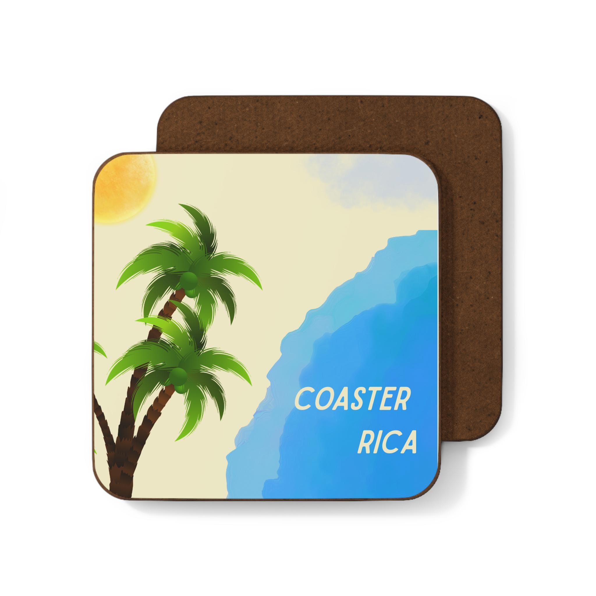 Bring a slice of sun, surf, and palm-shaded afternoons to any tabletop with this vibrant hardboard coaster. The glossy, full-color print captures bright blues, warm sand tones, and a playful palm tree — a tiny getaway spot for your morning coffee or evening drink. It feels light and cheerful on the counter, and the smooth top resists spills while the sturdy MDF backing offers dependable protection for surfaces. Whether used solo on a bedside table or scattered around for guests, this coaster adds a relaxed, coastal mood to everyday moments. You can't take Costa Rica with you but you can always have your Coaster Rica nearby.